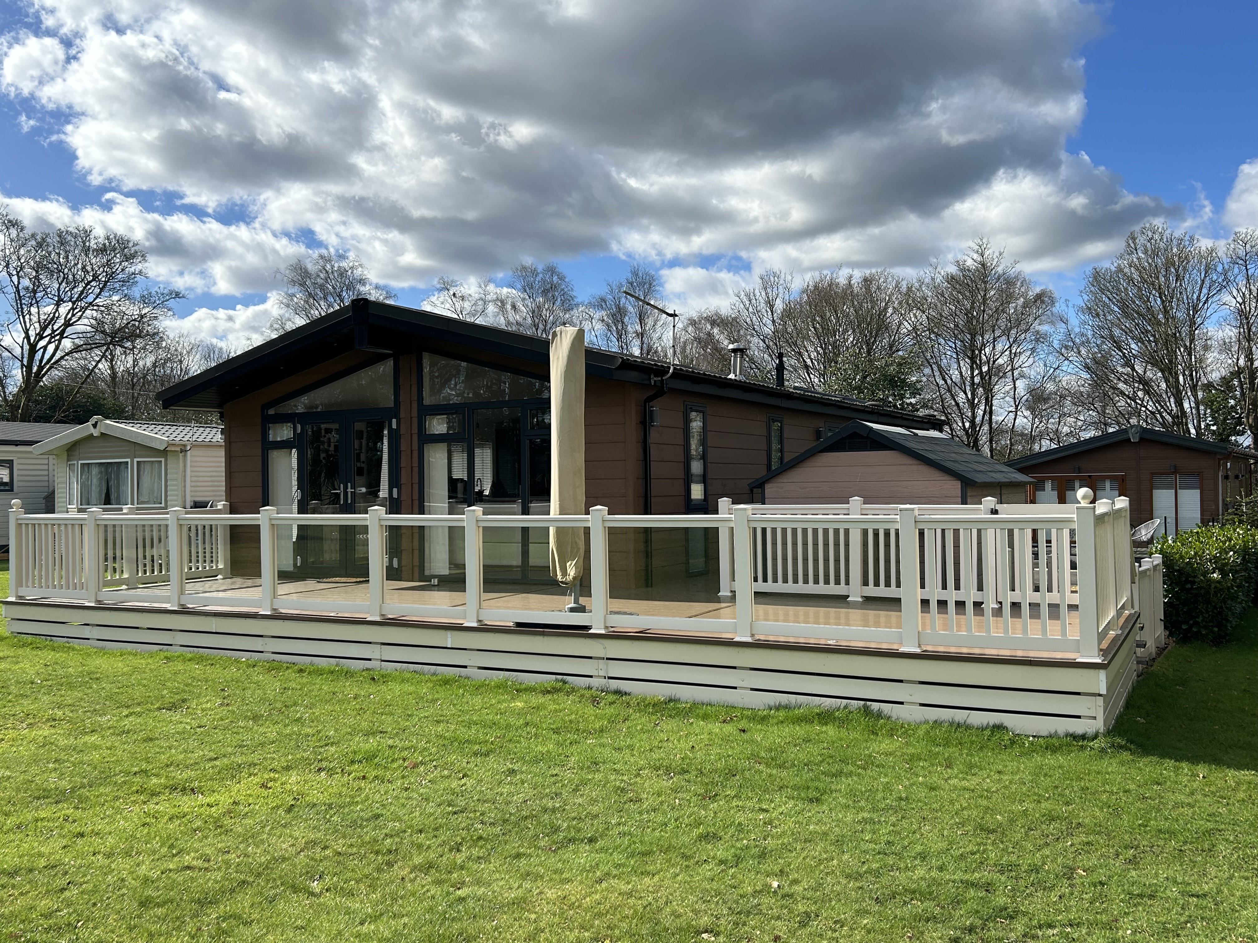 This stunning two bedroom lodge is positioned to the rear of the main house overlooking the rear lawn and benefits from the sun all day long. With its very large deck, storage shed and parking area this makes the perfect holiday home for couples or a family.