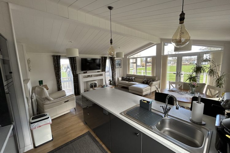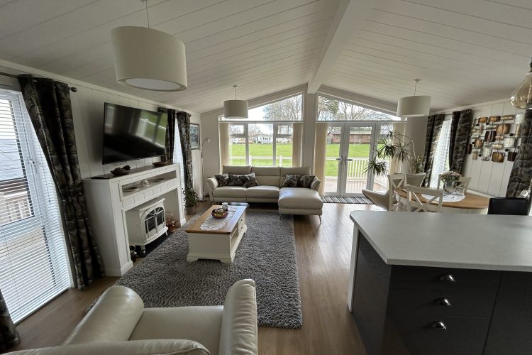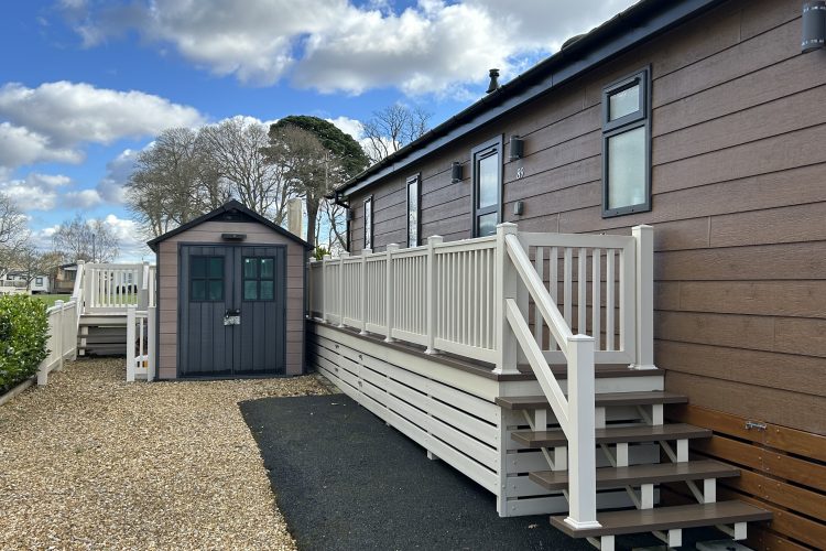 Being a Park home manufactured lodge, it complies above and beyond the BS6232 standard for a residential home. It comes completely furnished throughout, has a very large deck off the front of the lodge, and a sizeable Keter storage shed to the side of it. Connected to all services on the Park, water, sewage, electric and with bottled LPG gas.