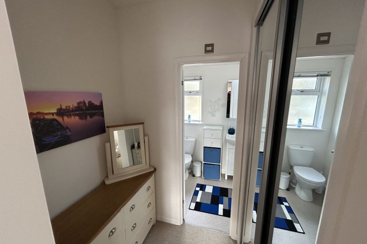 Finally move along the corridor to the main bedroom which again comes complete with a large double bed, chest of drawers unit, bedside tables and along side the bed there is a walk through wardrobe area before entering the en-suite. This large bathroom comes with a bath,/shower, toilet, wash hand basin and heated towel rail. There is also a velux window in the roof of this room.